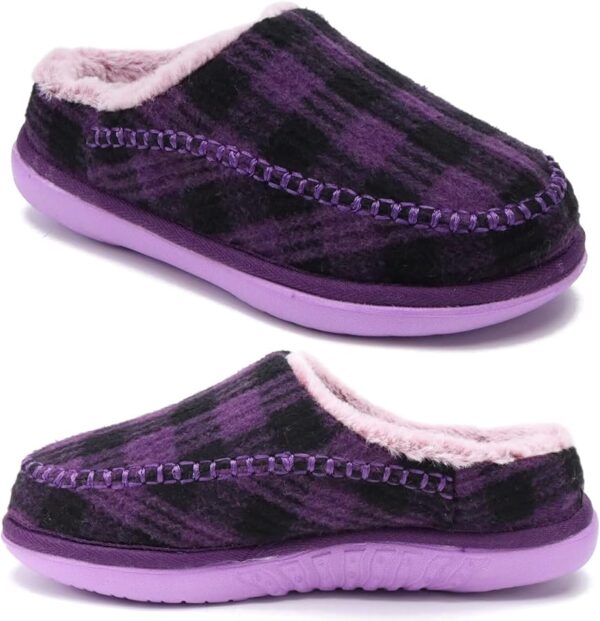 KuaiLu Women’s Purple Plaid Plush Faux Fur Slippers