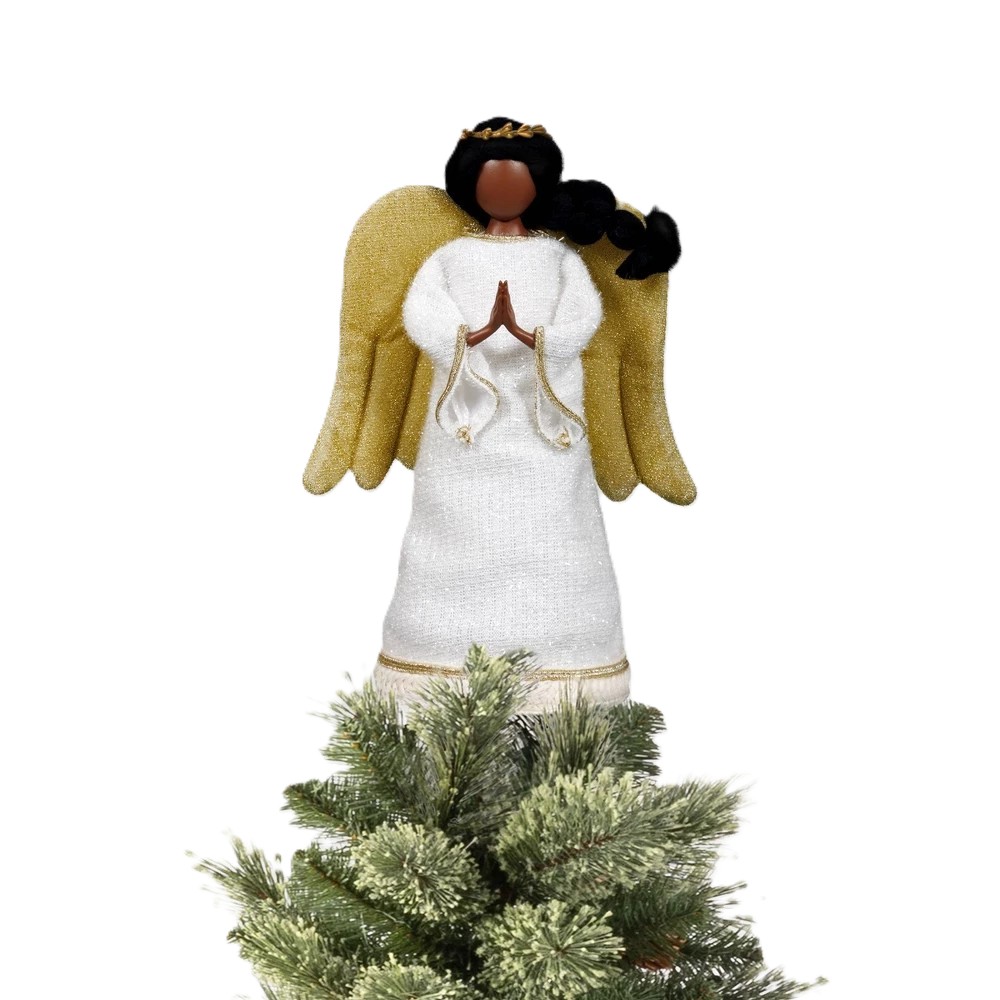 Complete your Christmas tree with timeless elegance using this fabric angel tree topper from Wondershop™. Standing 11.25 inches tall, the angel features soft white fabric accented with gold details for a classic, serene look. Lightweight and easy to place, it adds a graceful finishing touch to your tree while bringing warmth and tradition to your holiday décor.