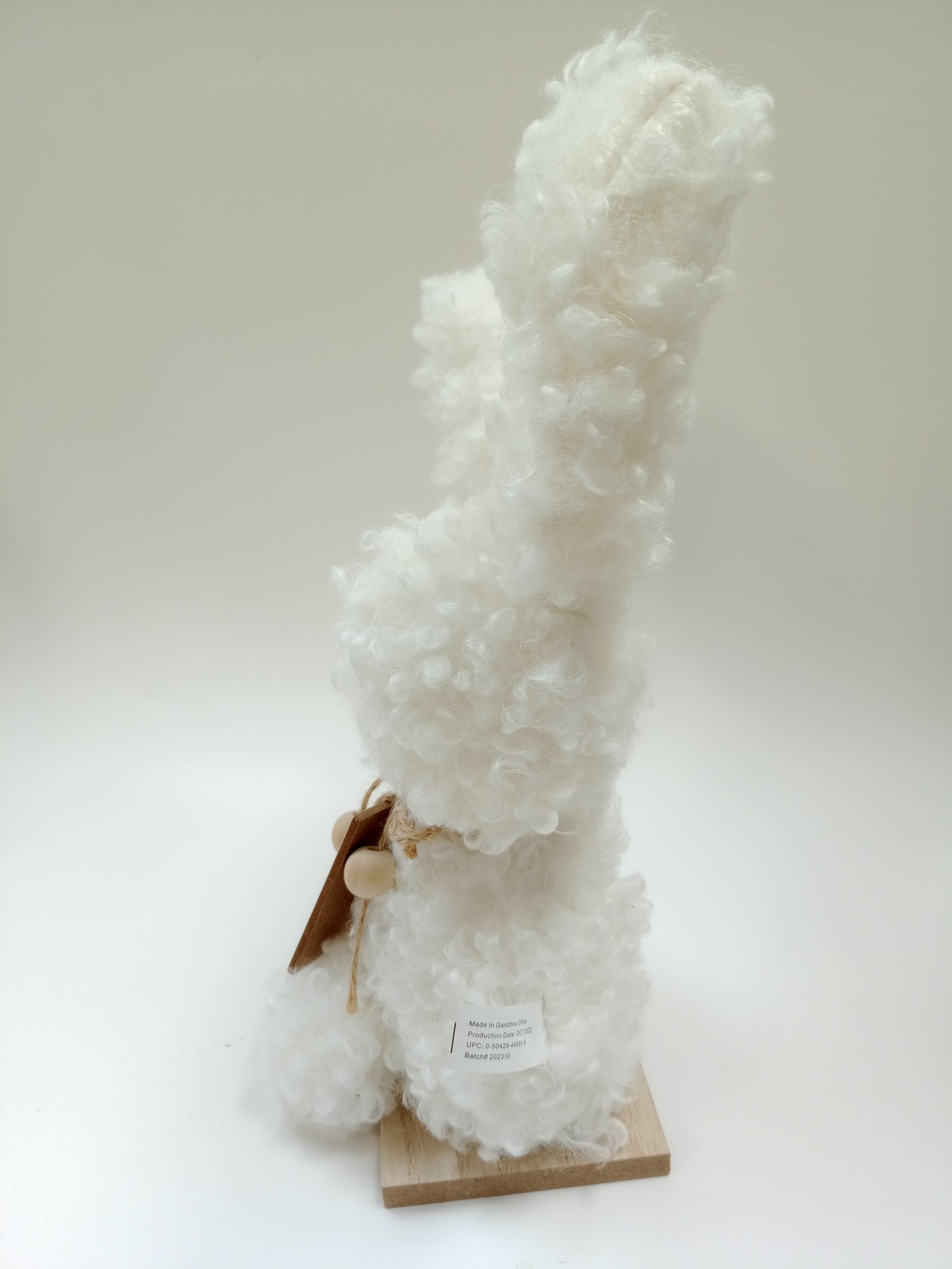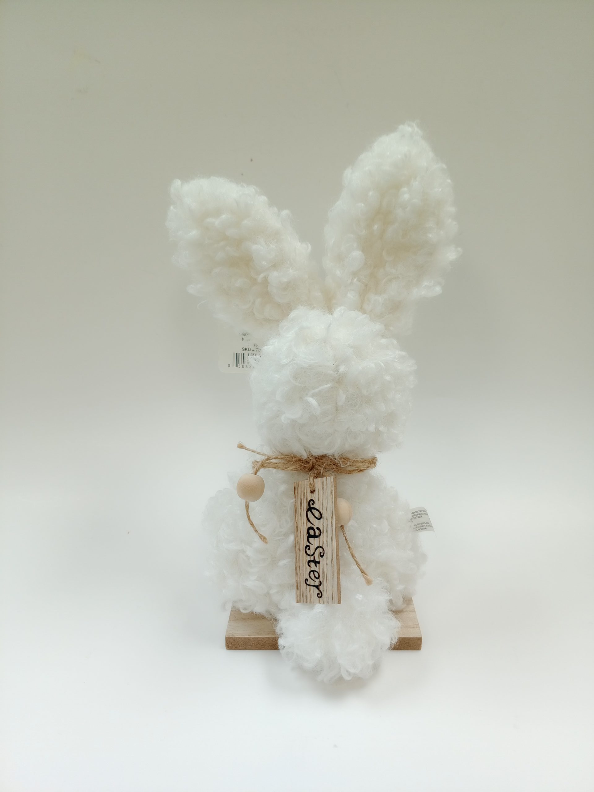 9″ Plush Fluffy Easter Bunny on Wooden Stand- White