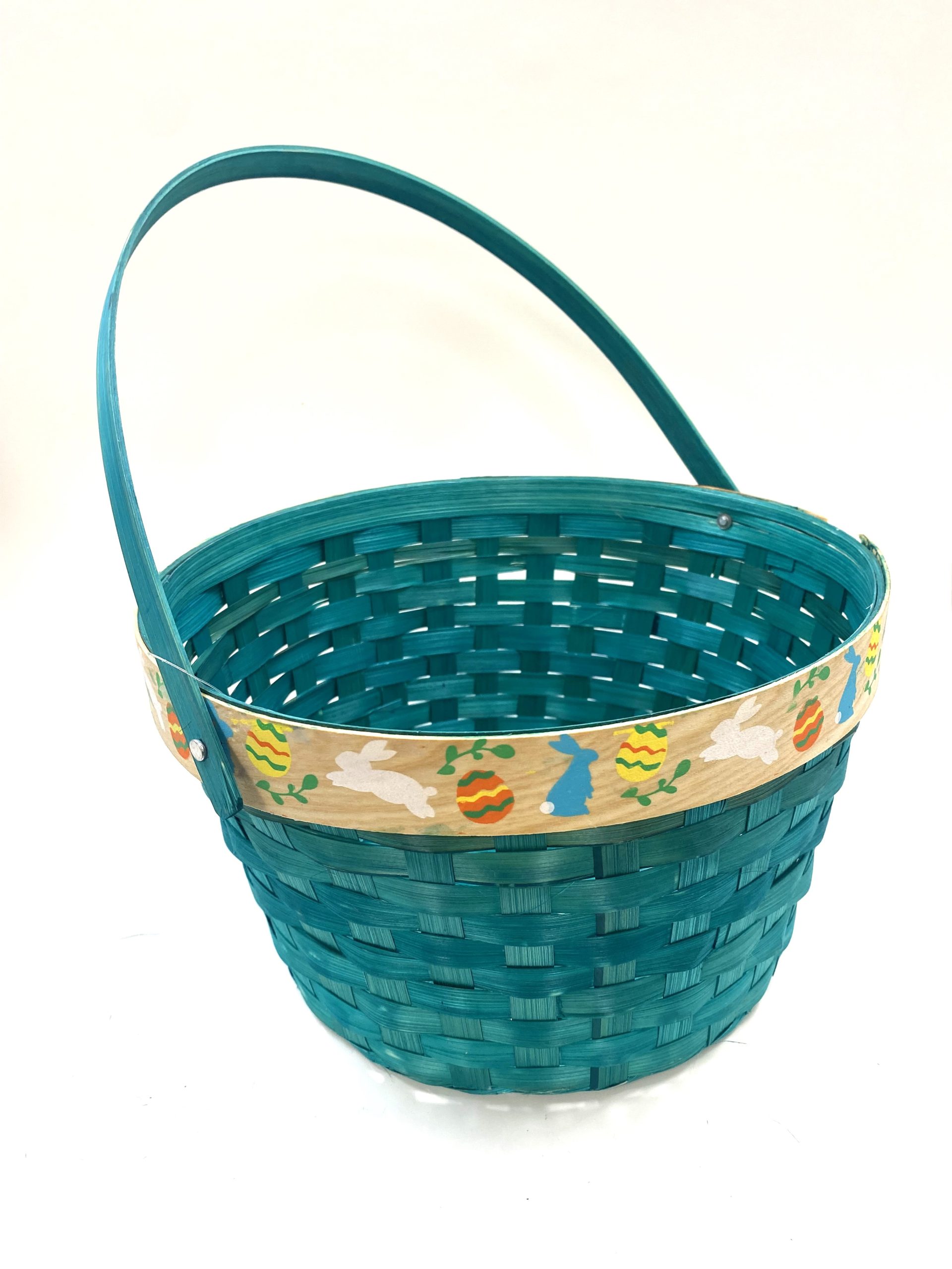 Easter Woven Green Basket (Easter Eggs & Bunny Designed Rim)