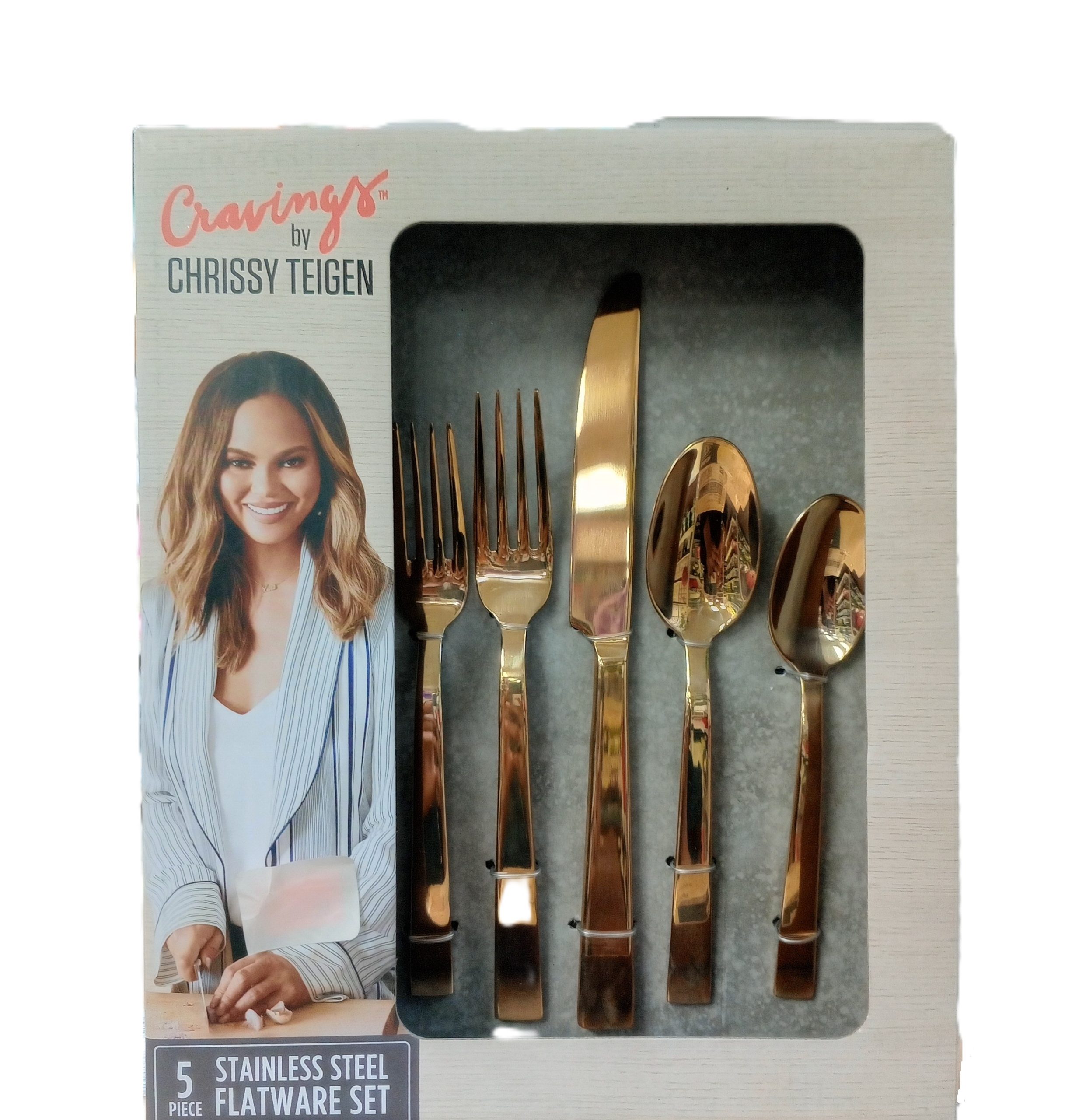 Chrissy Teigen Stainless Steel Flatware Set 5pc Gold
