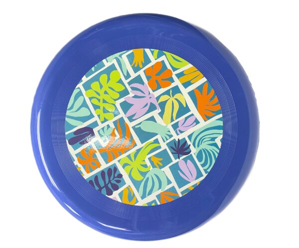 Round Glass Folding Patio Table- Blue/White/Black