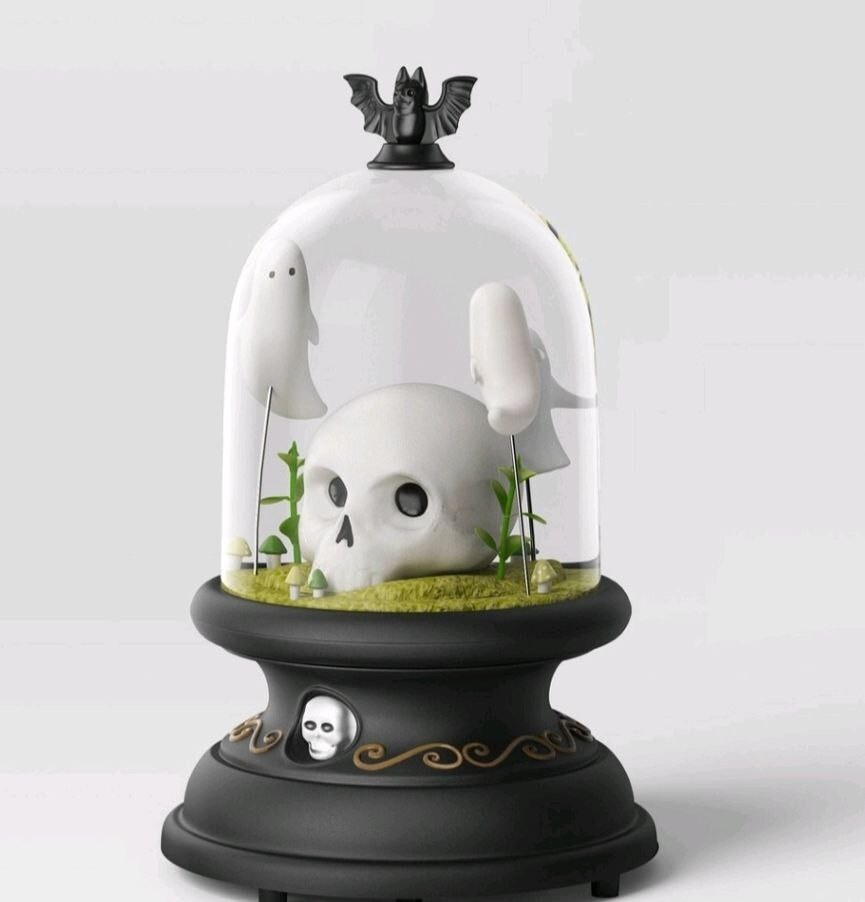 Add a spooky glow to your space with the Light-Up Ghost and Skull Cloche from Hyde & EEK! Boutique™. This eerie display features a ghost and skull inside a clear plastic dome, lighting up for extra Halloween charm. Perfect for shelves, mantels, or tabletops!