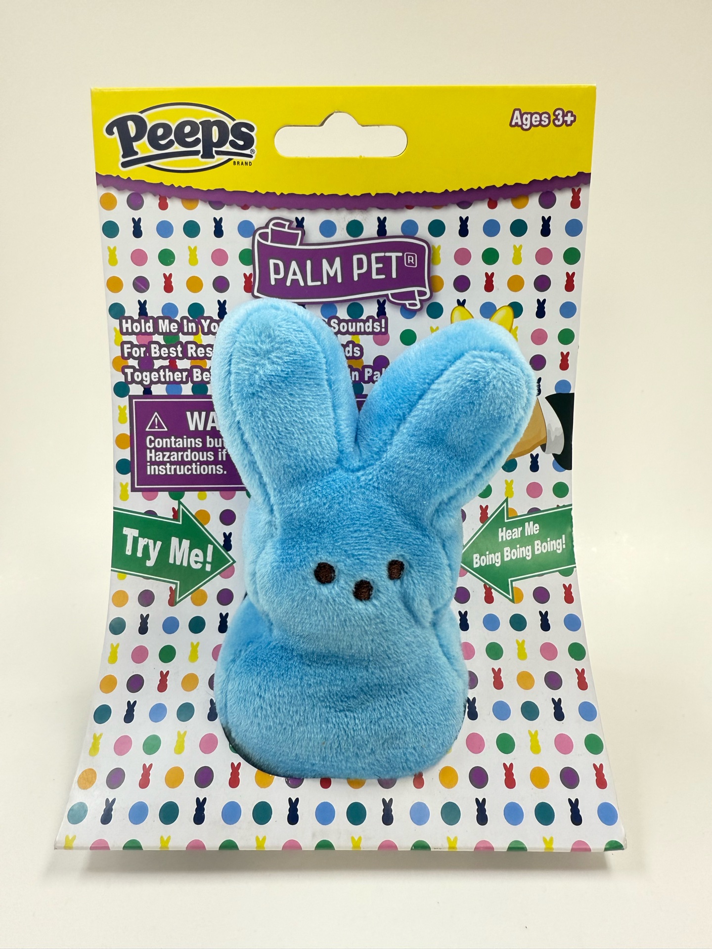 The Peeps Palm Pet is a soft, mini plush that fits perfectly in your hand—and it’s more than just cute! When you hold it, it makes a fun noise for an interactive surprise. For the best experience, rub your hands together before placing it in your palm and enjoy the magic. A perfect Easter basket addition or pocket-sized companion!