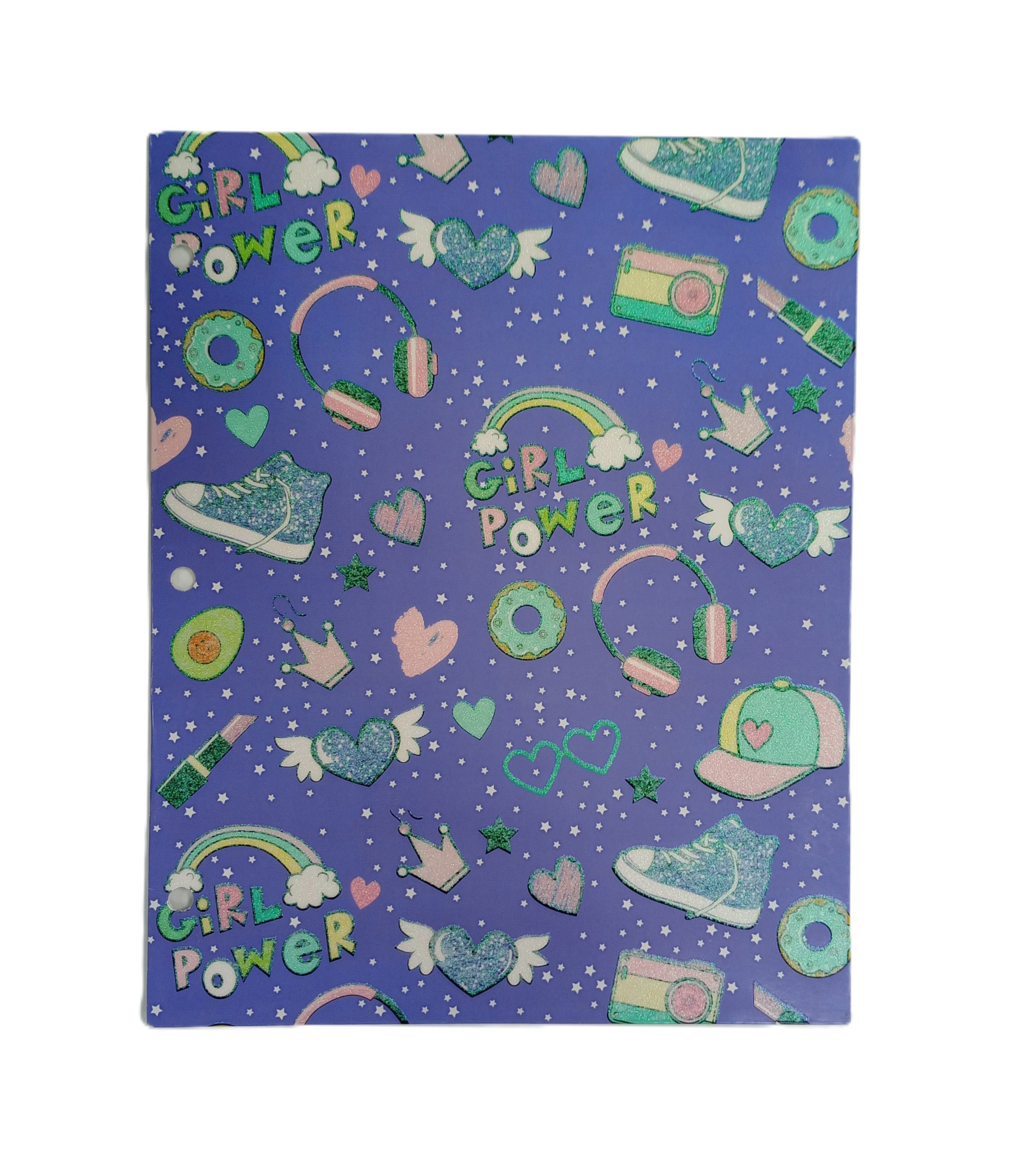 Show off your sparkle and confidence with the Girl Power Glitter Portfolio Folder. This bold purple folder features a fun mix of glittery icons—like donuts, hats, shoes, and cameras—alongside empowering “Girl Power” text. With its eye-catching design and durable construction, it’s perfect for organizing schoolwork or creative projects while expressing your unique style.