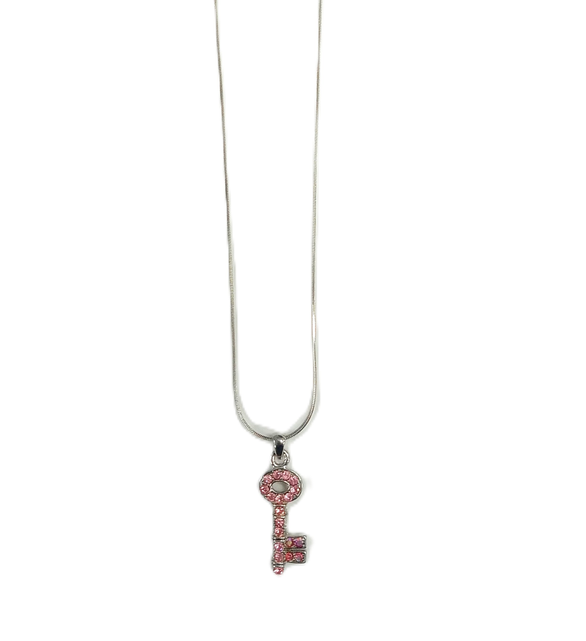 Pink Rhinestone Key Charm Necklace