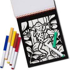 Magic Velvet coloring scenes are filled with special effects! The velvet-flocked backgrounds create amazing contrast with the six vibrant marker colors. And hidden patterns appear when you color in the scenes! This compact, spiral-bound coloring activity book is just the right size for kids and perfect for travel . . . the felt-tip markers store right in the cover. Six sturdy coloring boards feature animal – themed scenes.