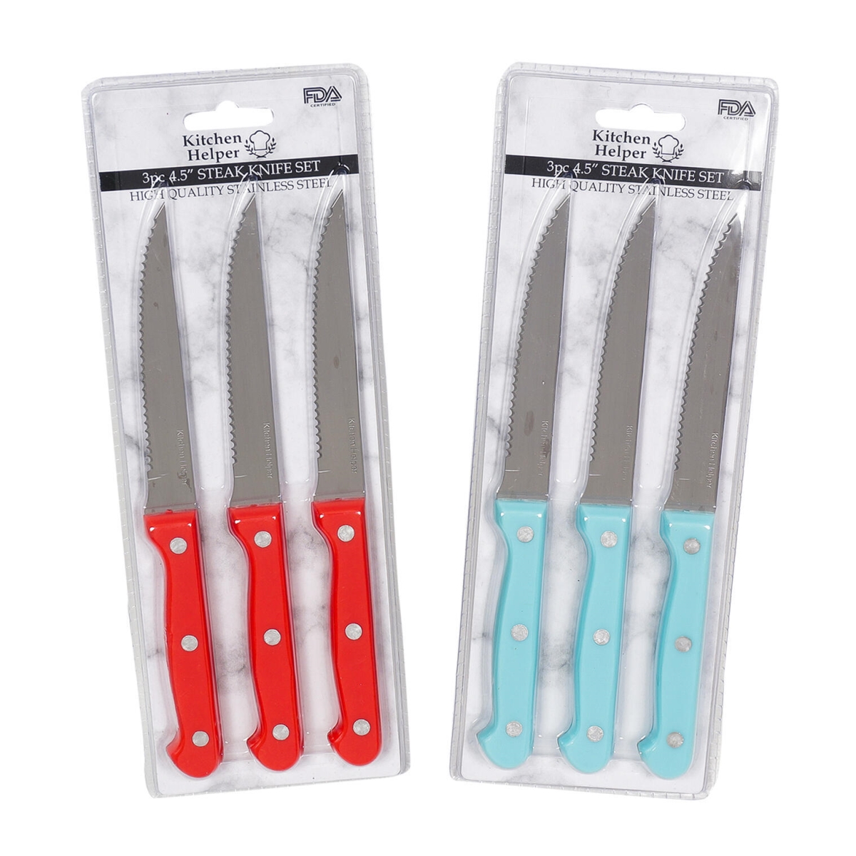 STEAK KNIFE SET,3pc 4.5″ 2ASST/CLRS