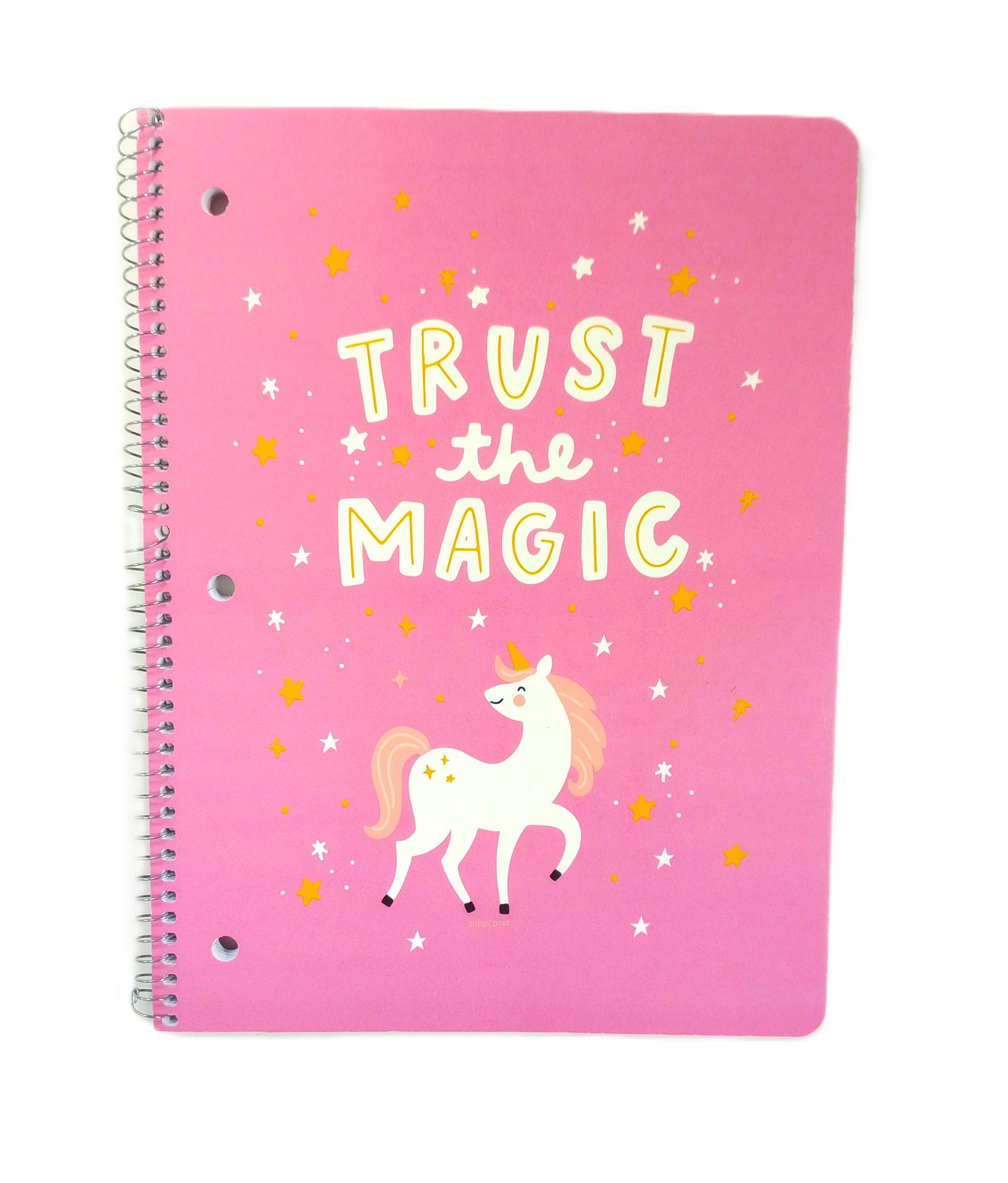 Bring magical charm to every note with this 8″ × 10.5″ spiral notebook featuring a playful pink unicorn design and the inspiring motto “Trust the Magic.” Complete with 80 wide‑ruled, perforated sheets, it’s perfect for school, journaling, or creative daydreams.