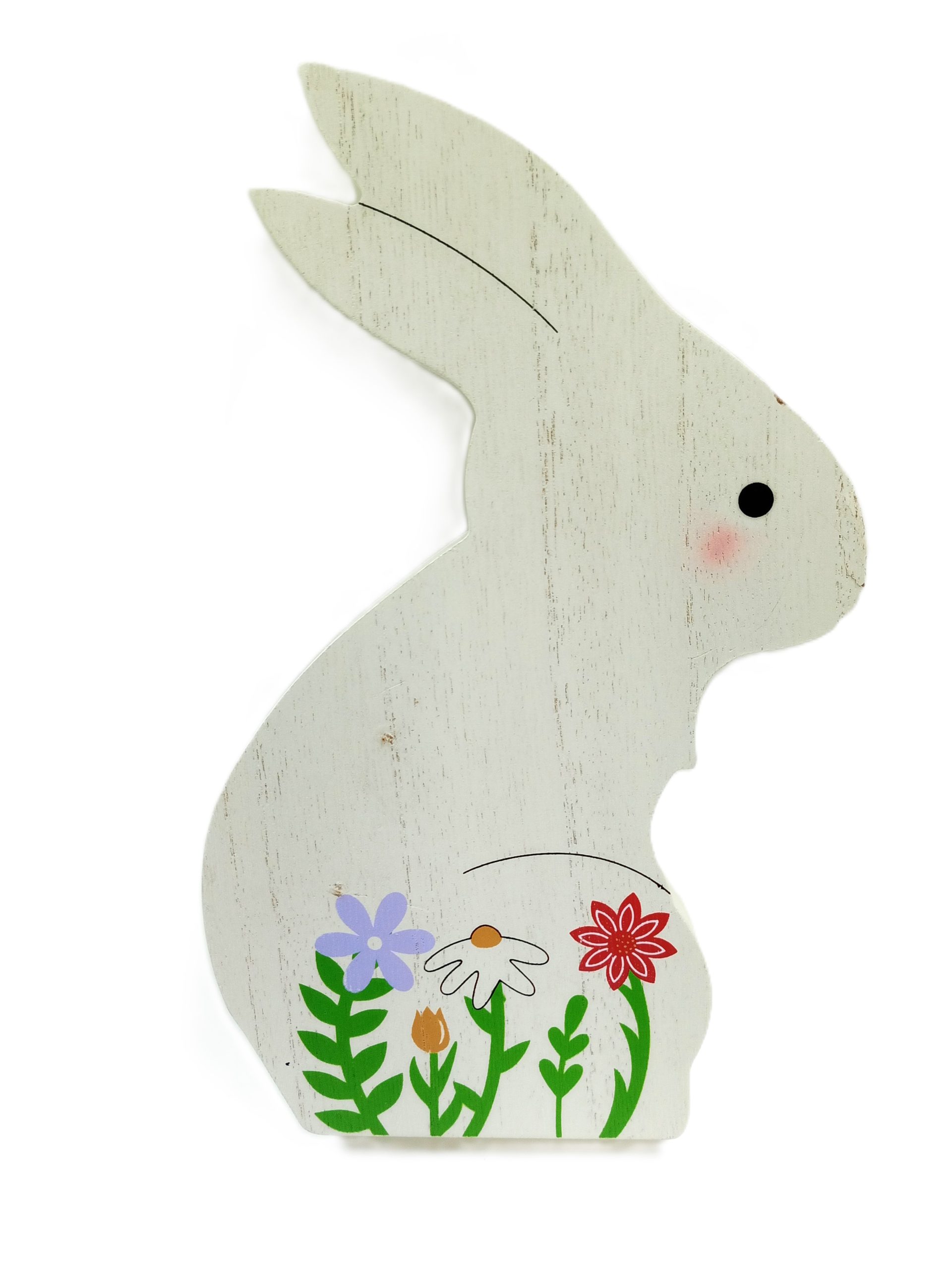 White Floral Wooden Bunny Décor
